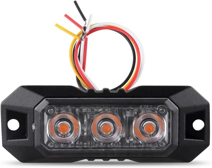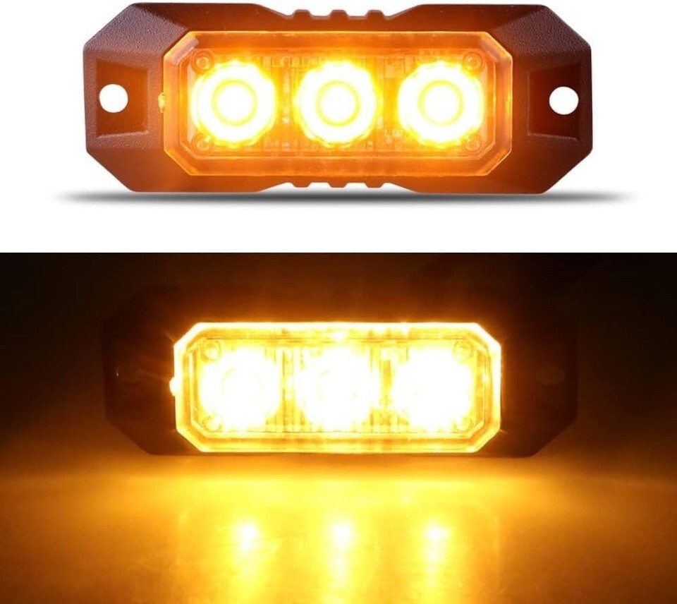 1pc 3-LED Emergency Strobe Light Ultra-Slim Mini Grille Flashing Amber, 12V-24V, Waterproof, Sync Function