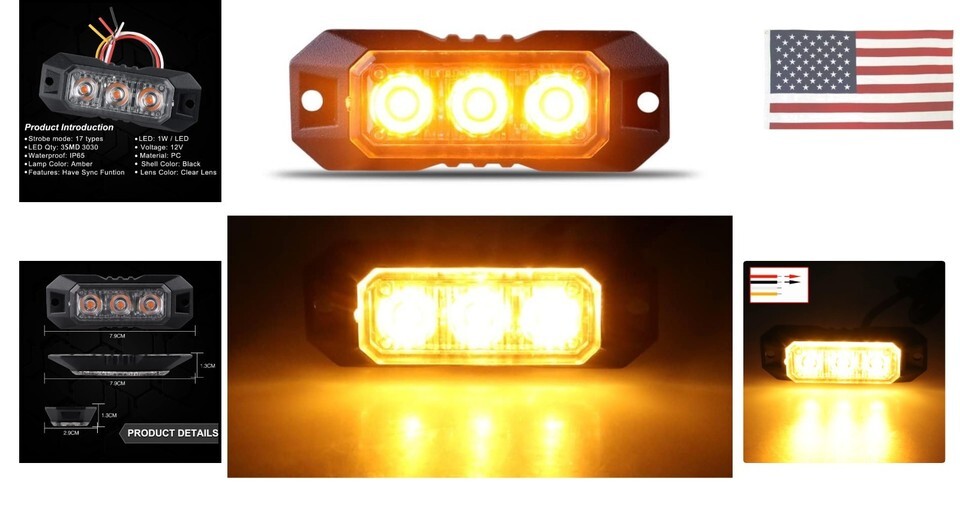 Items Included: 3 Amber LED Strobe Lights,Mounting Gasket,Screws