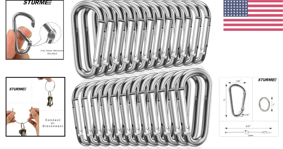 Versatile enough to be used as a keychain clip or to attach sports bottles, backpacks, camping ropes, and hiking poles.