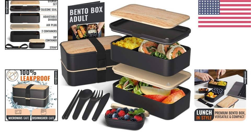 Dishwasher Safe Bento Lunch Box - Leakproof with Utensils for Adults Kids