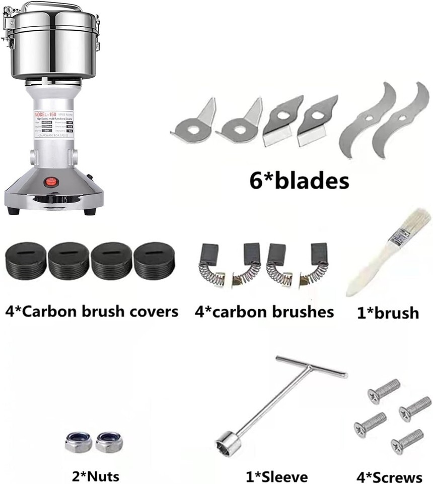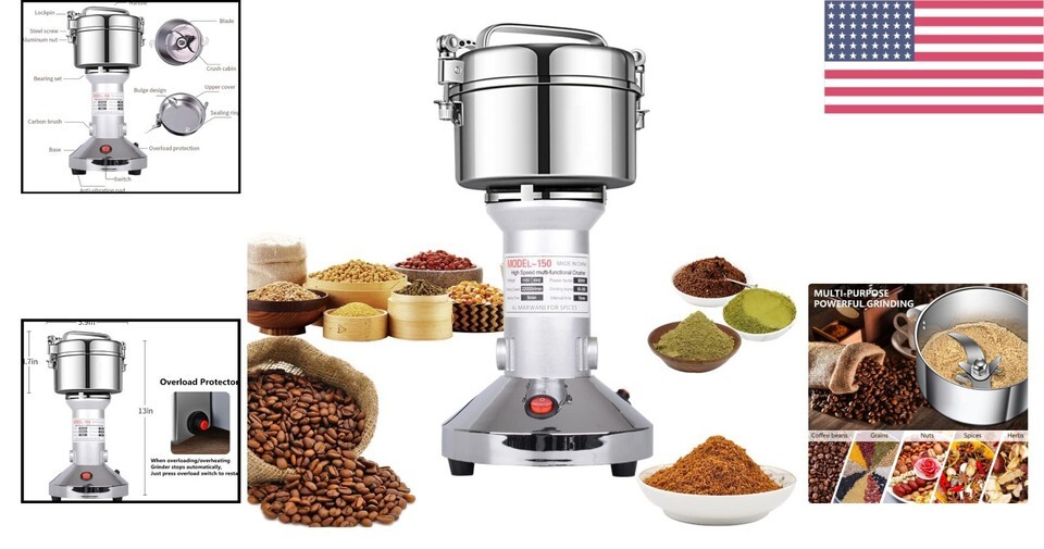 Powerful Performance: 900W motor with a capacity of 150g, perfect for swiftly grinding a variety of grains and spices.