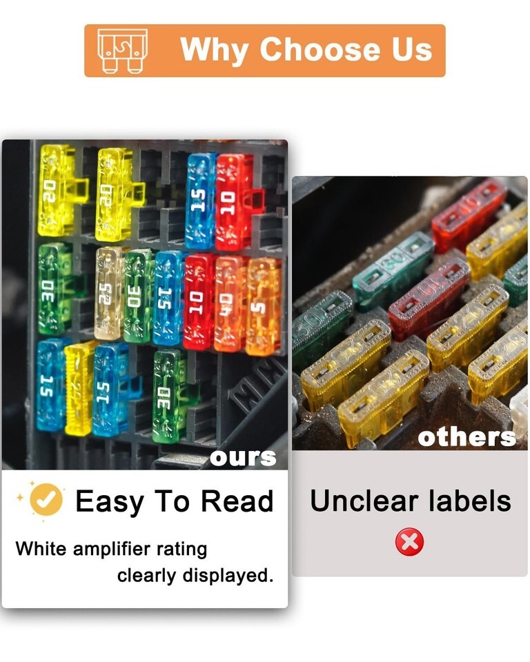Durable Construction: Made of materials, ensuring fast and precise fusing to protect your vehicle from excessive current.