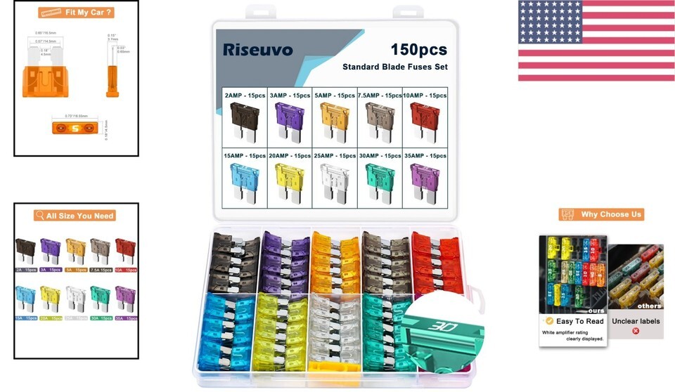 Don't let electrical issues leave you stranded! Our 150-Pc Fuse Kit is your ultimate solution for ensuring your vehicle, whether it's a car, truck, RV, or boat, remains equipped and functional. Crafted from materials, each fuse is designed for fast current response to safeguard your system from overloads. With an easy-to-read, color-coded identification system, finding the right fuse has never been easier. This extensive kit not only meets your immediate needs but also simplifies future repairs, making it invaluable to both seasoned professionals and enthusiastic DIYers.