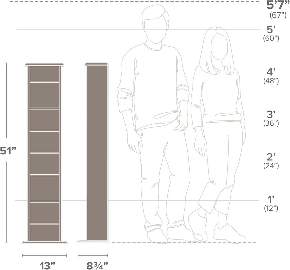 Assembled Dimensions: 8.75" D x 13" W x 51" H