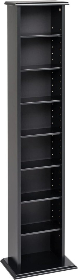 Transform your small space into an organized oasis with our Compact Black Media Cabinet. Its elegant design not only holds a remarkable capacity of 160 CDs and 65 DVDs, but it also seamlessly fits into narrow areas of your home or office, making it a sophisticated storage solution for the modern lifestyle. With 7 adjustable shelves, you can customize your media storage solution as your collection evolves.