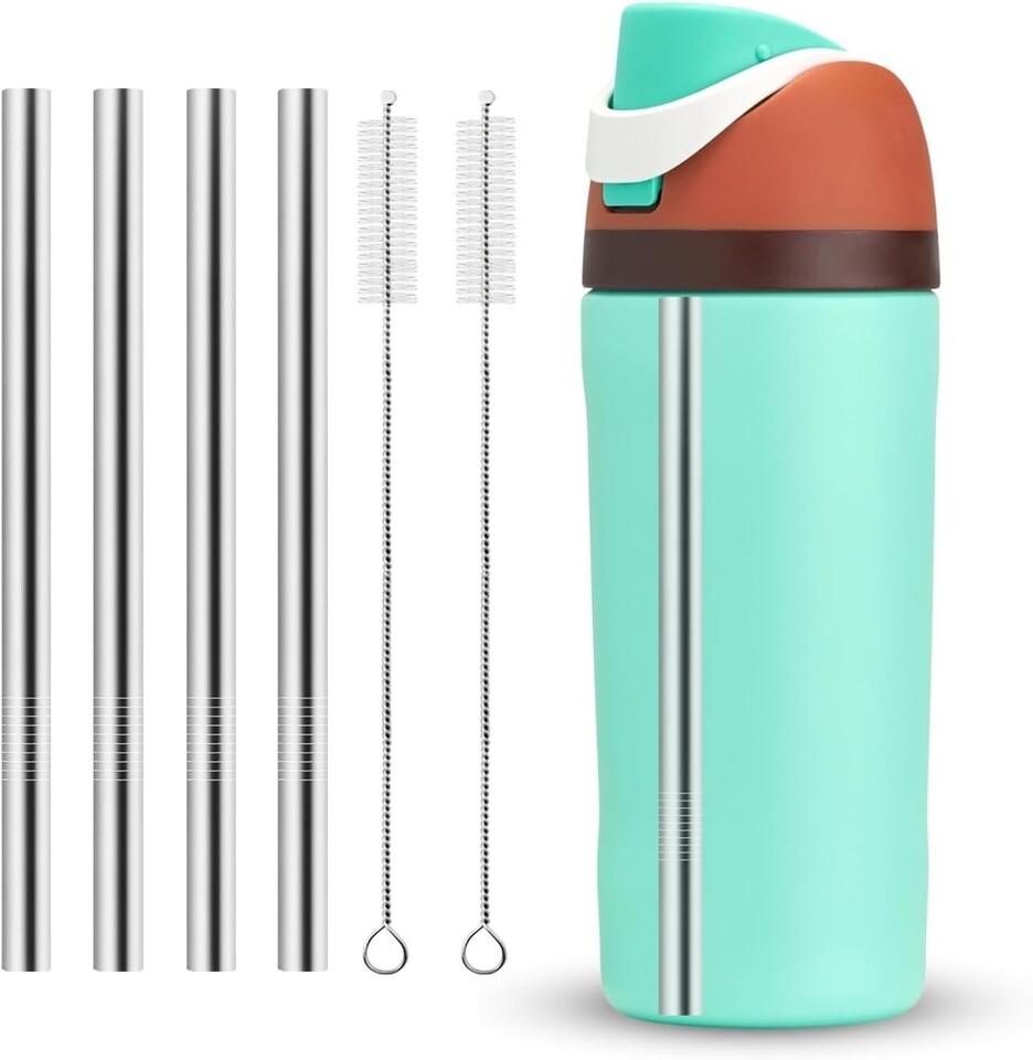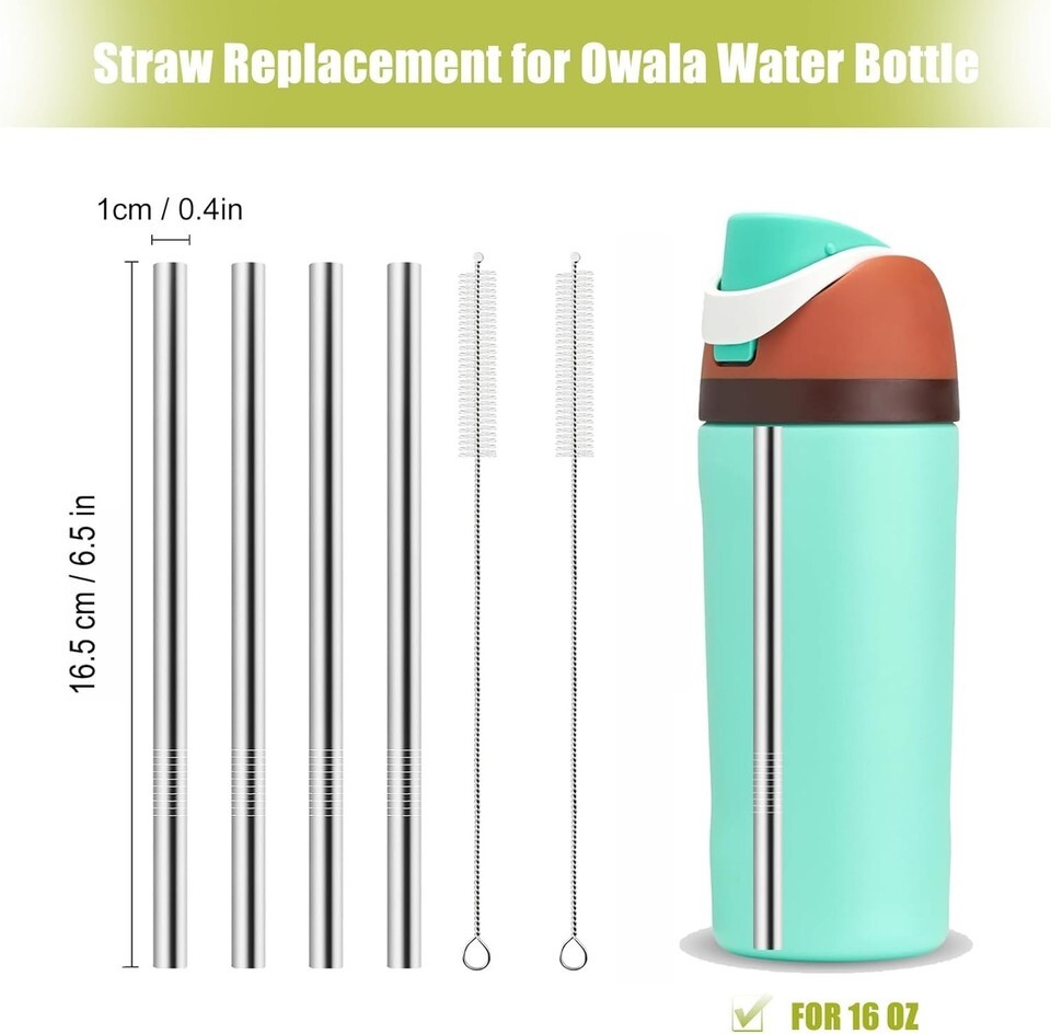 Metal Replacement Straws for Owala Kids FreeSip 16 oz Water Bottle, Stainless Steel, 4-Pack with 2 Straw Cleaners