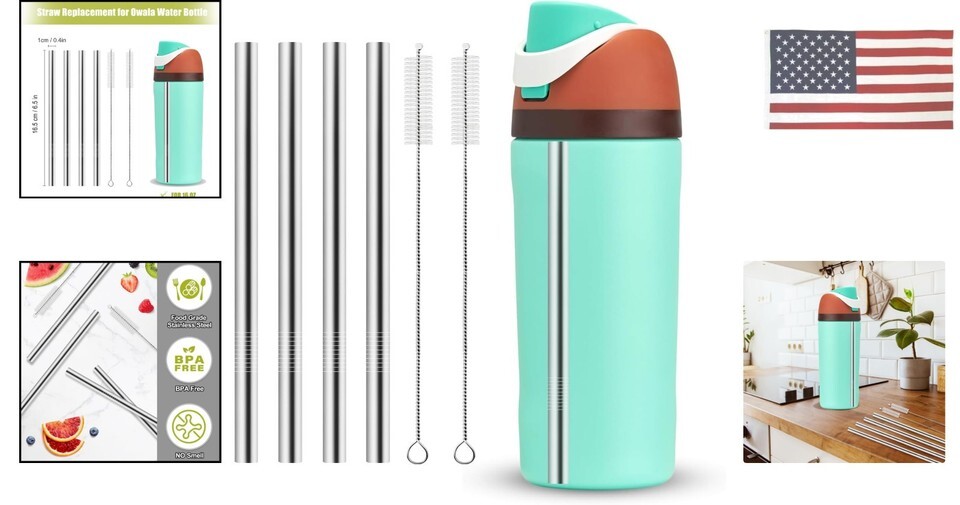 Metal Replacement Straws for Owala Kids FreeSip 16 oz Water Bottle, Stainless...