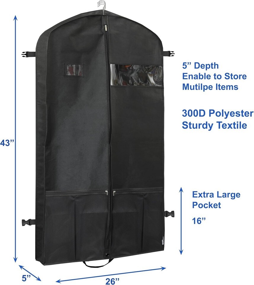 43-Inch Heavy Duty Garment Bag - Extra Wide & Travel-Friendly Storage