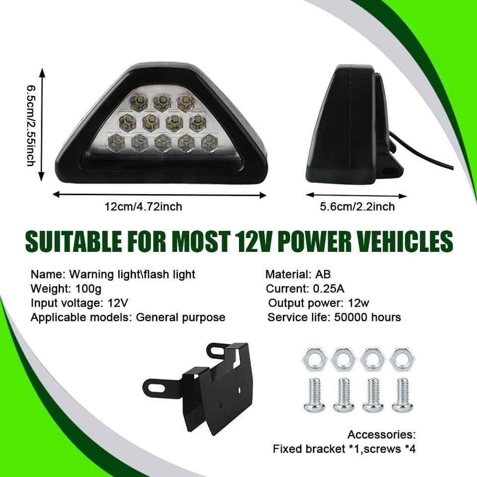 Excellent Performance: Constructed from high-quality ABS plastic with an waterproof rating, ensuring reliable operation in rain, fog, and snow. Features 12 LEDs for high brightness and low energy consumption.