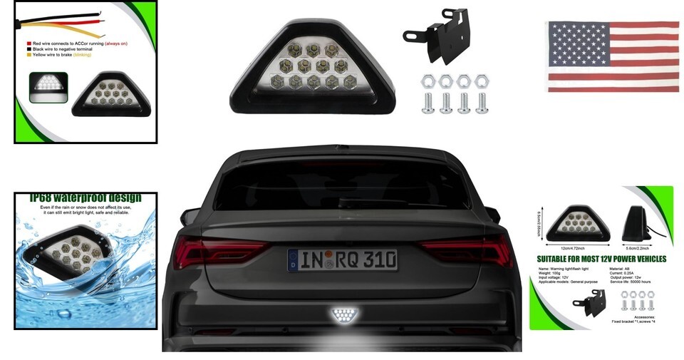 Unique Look: Distinctive triangle and F1 design that stands out, adding a stylish touch to your vehicle while enhancing visibility.