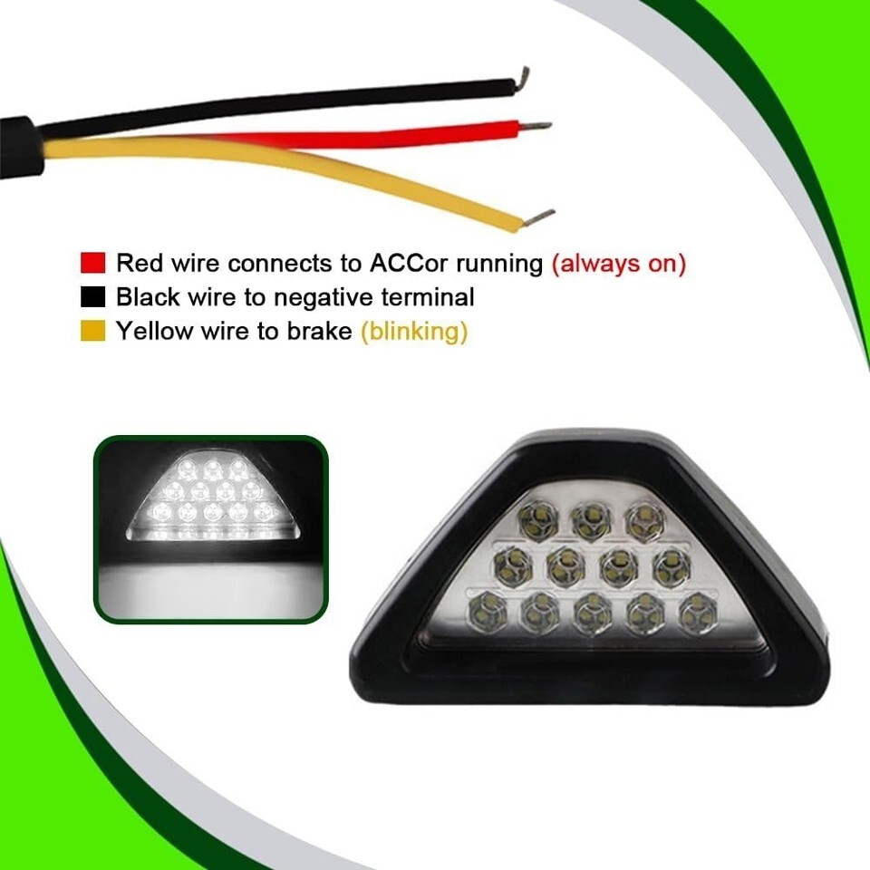 Third 3rd Brake Light, LED F1-Style Triangle Rear Fog/Stop Lamp, Waterproof, ...