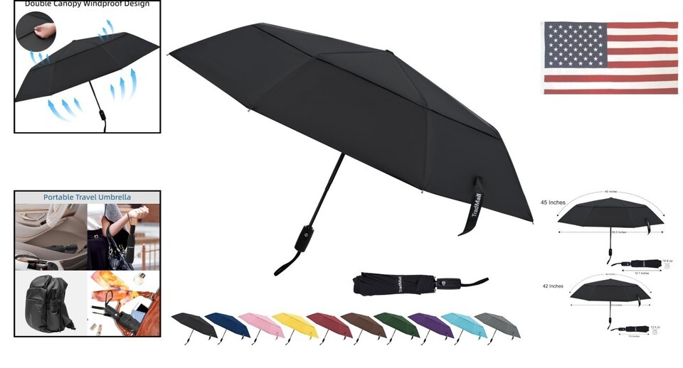 Travel Umbrella Compact 42/45 Inches Air Vent Double Canopy Windproof Automat...