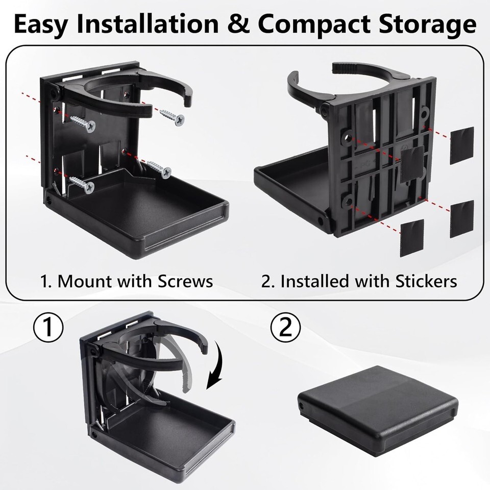 Adjustable Folding Cup Holder for Cars, Boats & RVs - Waterproof & Space-Saving
