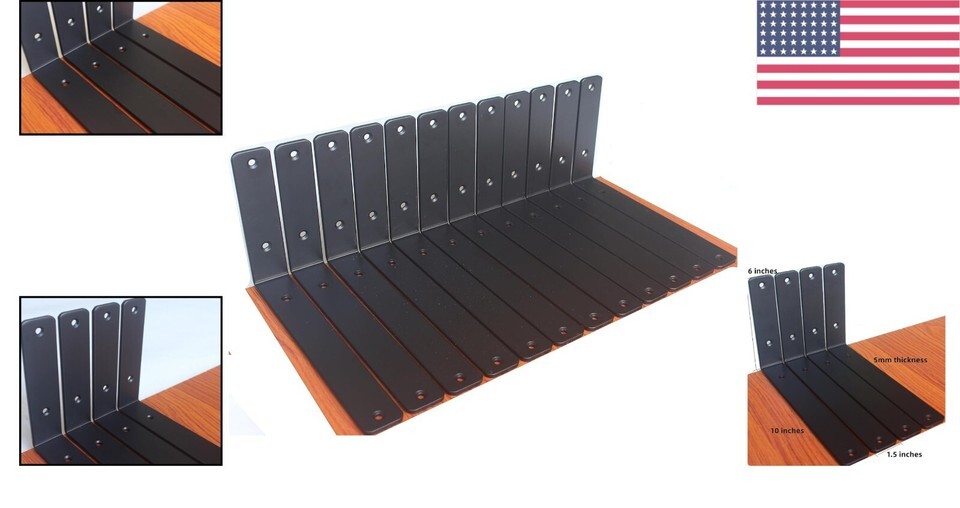 Rustic 10"x6" Floating Shelf Brackets, 4-Pack Heavy Duty Matte Black Design