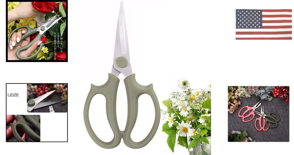 7-inch Flower Scissors, Stainless Steel Floral Shears, Small Pruners (1 Pack), Grey Green