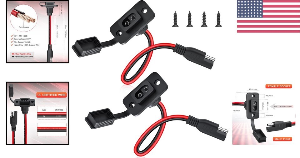 Are you looking for a dependable solution for your solar and battery applications? Our Weatherproof 12AWG SAE Connector Power Socket offers unparalleled durability, easy installation, and broad compatibility across various setups. With its robust build and thoughtful design features such as weatherproof caps, you can be assured of reliable performance even in challenging conditions.