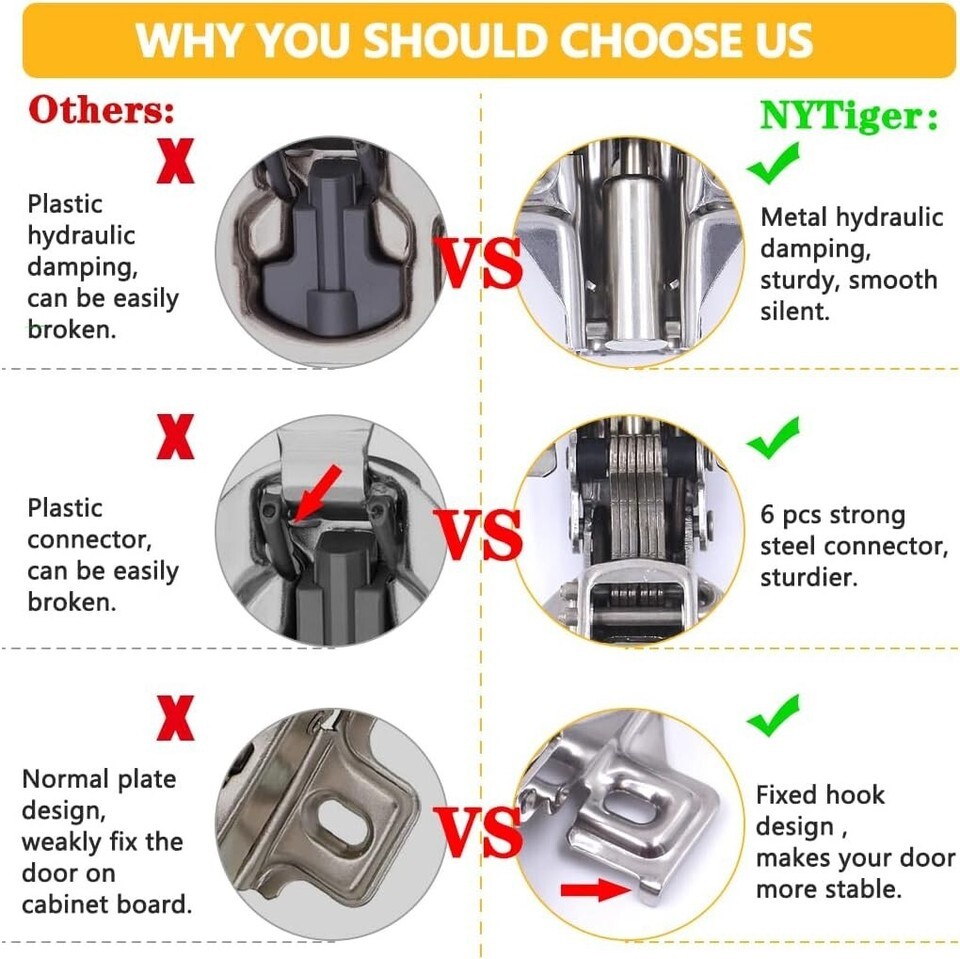 Sleek Soft-Close Functionality: Each hinge features an integrated dampening system, allowing for a gentle, quiet closure that protects your cabinetry.