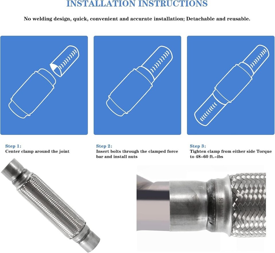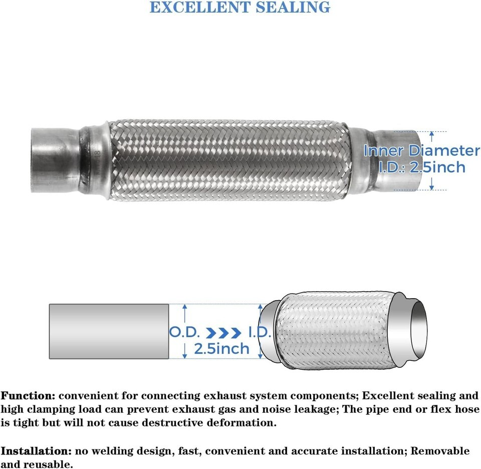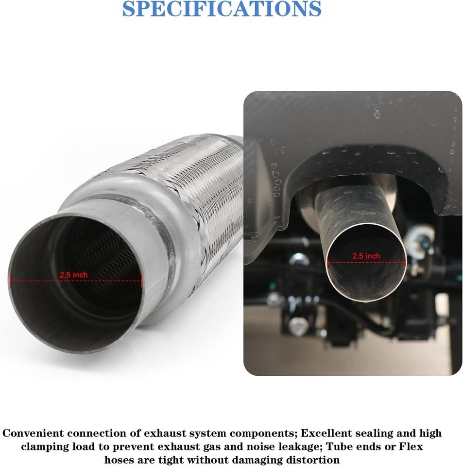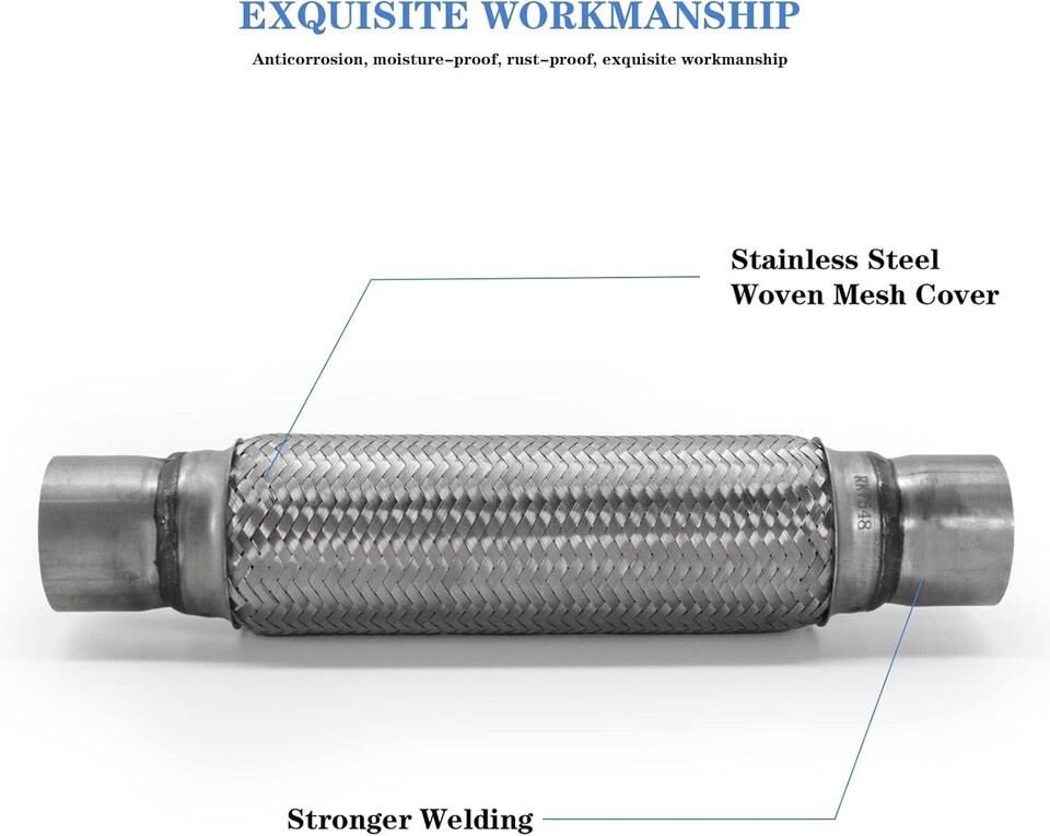 Upgrade your vehicle?s exhaust system with our Durable 2.5" ID Flex Pipe. This heavy-duty stainless steel component not only reduces vibration and noise but also enhances the longevity of your exhaust system. With its user-friendly weld-on installation, you?ll be back on the road in no time. Not all flex pipes are created equal, and our double braided construction provides the quality and performance you deserve.