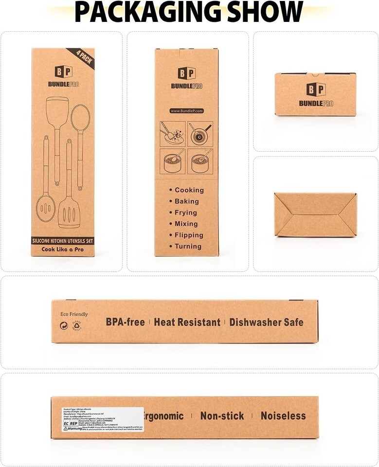 Transform your cooking experience with our 4 Pack Silicone Utensils. Whether you're a novice or an experienced cook, our thoughtfully designed, heat-resistant utensils are your key to crafting culinary masterpieces without compromising safety or comfort. Elevate your kitchen game and enjoy effortless cooking today!