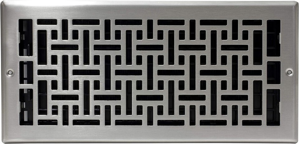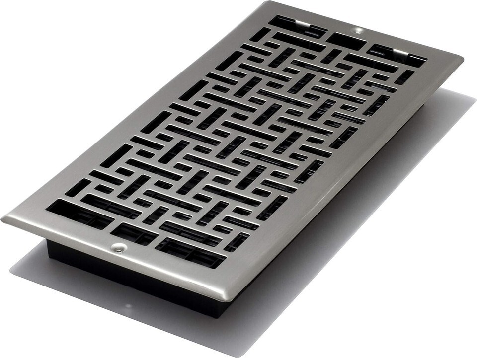 6-Inch by 14-Inch Brushed Nickel Wall Register with Oriental Design Durability