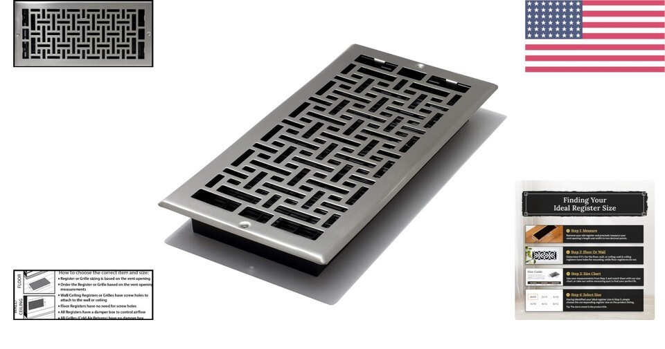 Transform your living space with a stunning blend of art and functionality. This wall register's exquisite oriental design combined with a brushed nickel finish offers a luxurious touch to any room, be it your living room, bedroom, or hallway.