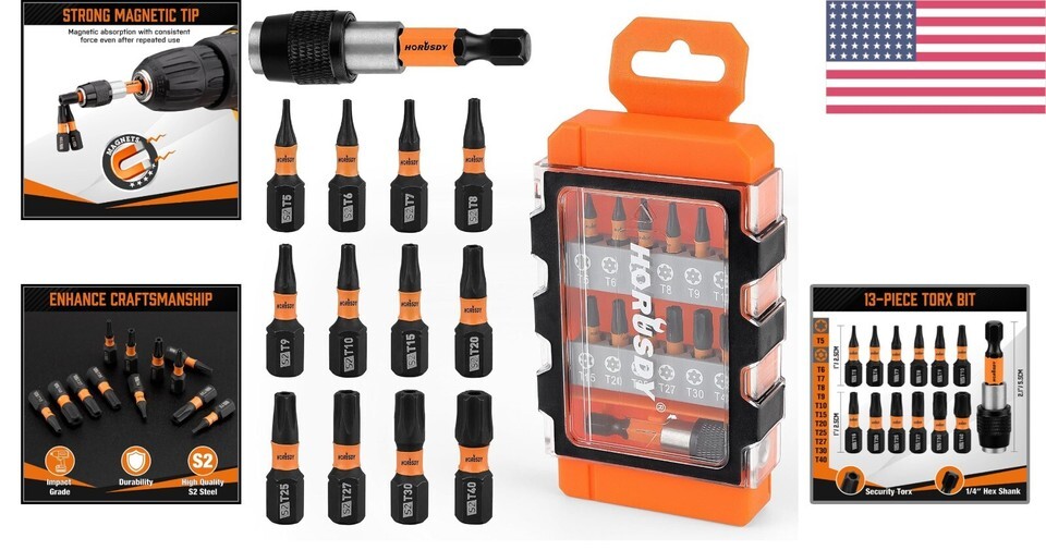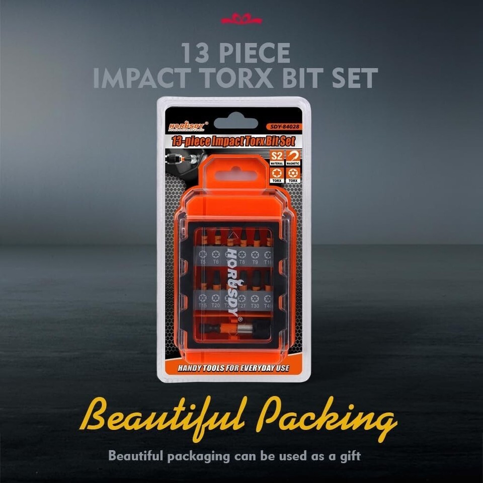 This set is not just about functionality; it?s about elevating your toolkit with the quality and reliability that you deserve. Perfect for both professionals and DIY enthusiasts, don't settle for less - elevate your craftsmanship today with our 13-Piece Compact Torx Bits Set!