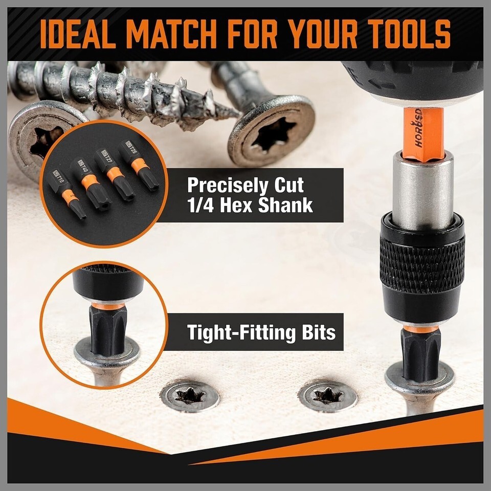 Achieve precision and security with ease, thanks to our Compact Torx Bits Set. Each bit is thoughtfully crafted from high-quality S2 steel, ensuring strength and resilience for all your repair and construction needs. With a comprehensive range of tamper-resistant sizes and a convenient storage case, you'll be prepared for any task that requires a touch of finesse and expertise.