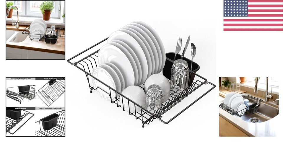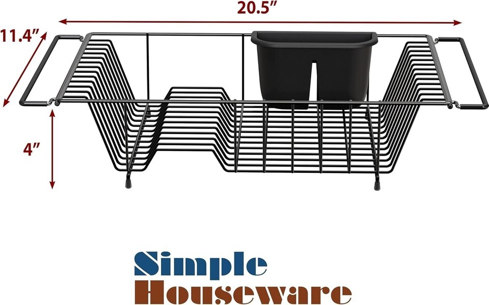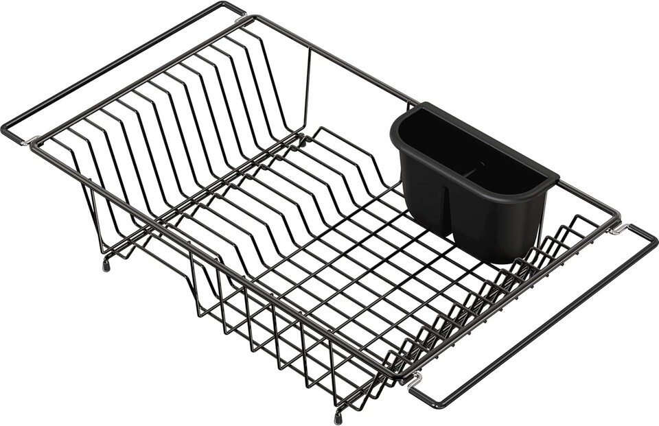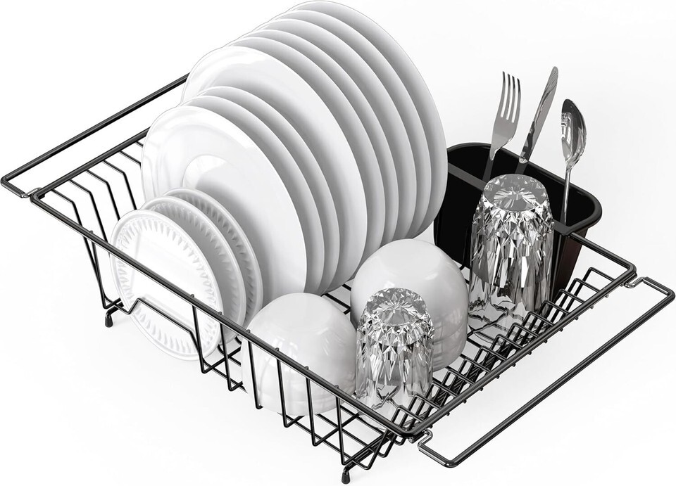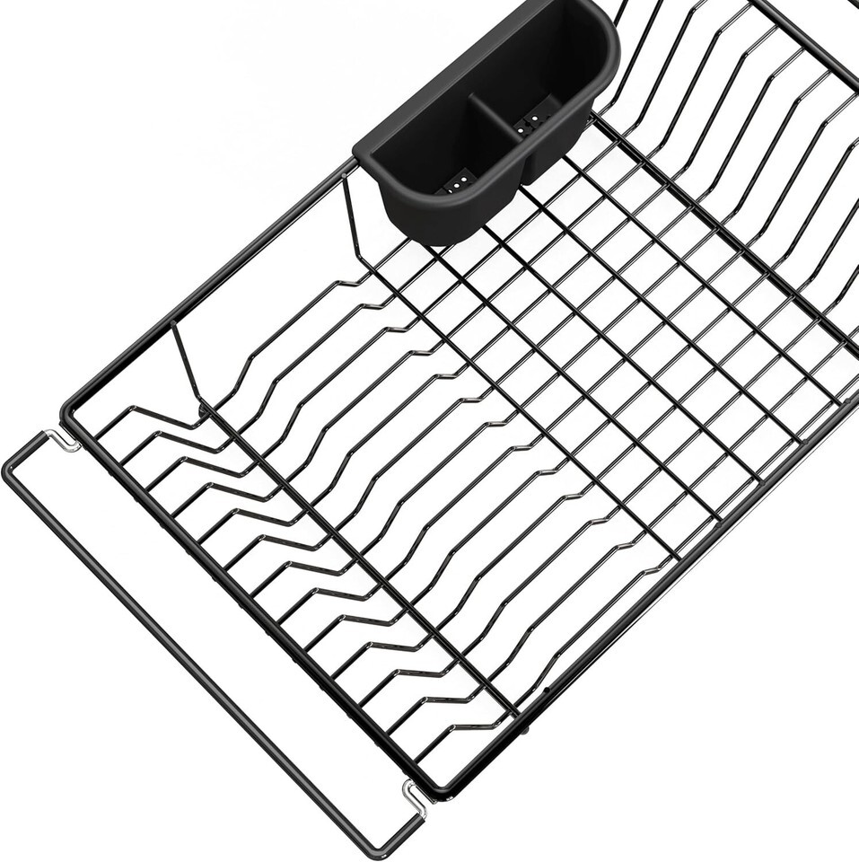 Large Over Sink Dish Drainer Rack with Utensil Holder - Sturdy Black Design