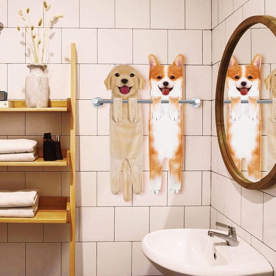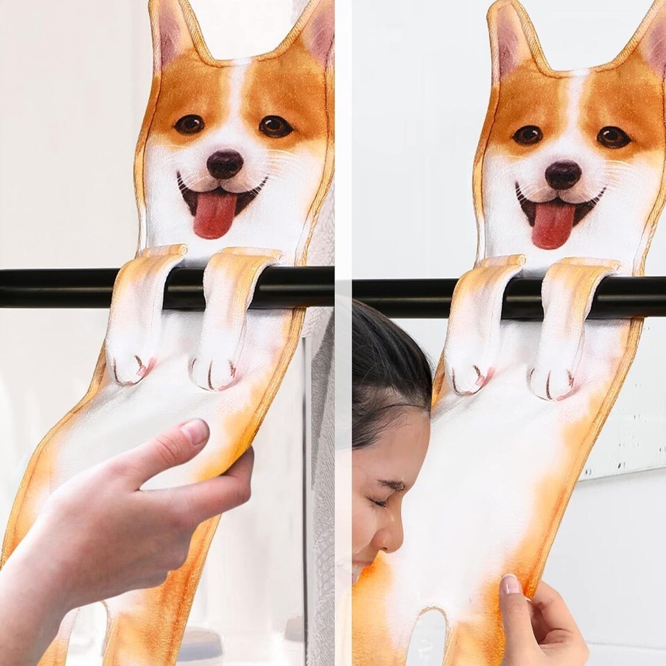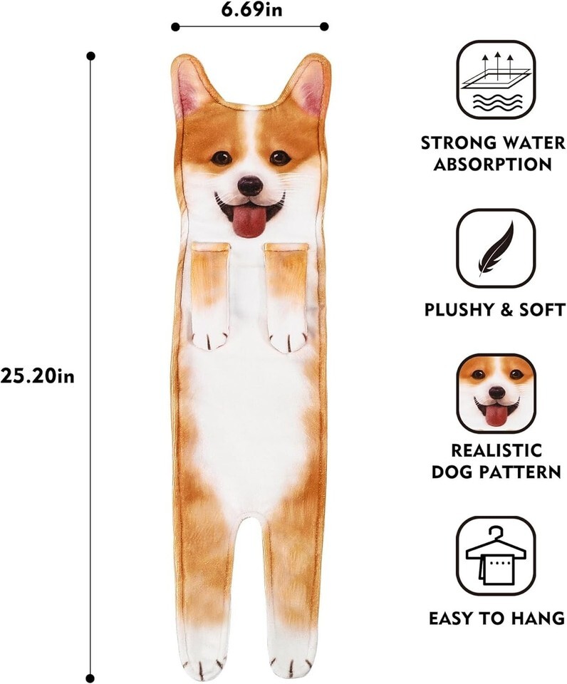 Funny Corgi Design: Adorable towels featuring a delightful Corgi design complete with realistic patterns on the back, tail, and paws. An enchanting touch that will make you feel like you're cuddling a furry friend every time you wipe your hands.