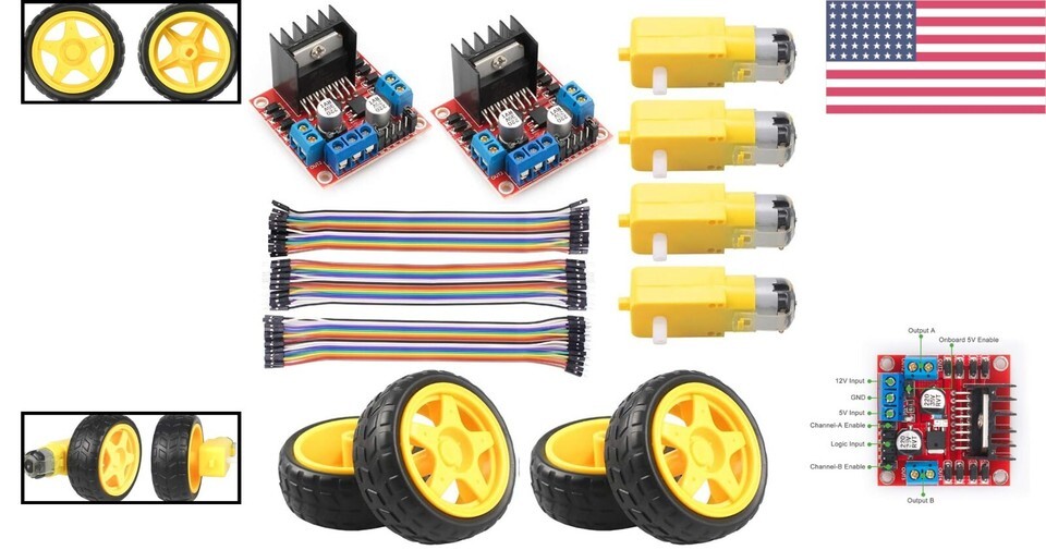 Complete Stepper Motor Control Kit with L298N 4 Car Wheels for DIY Projects