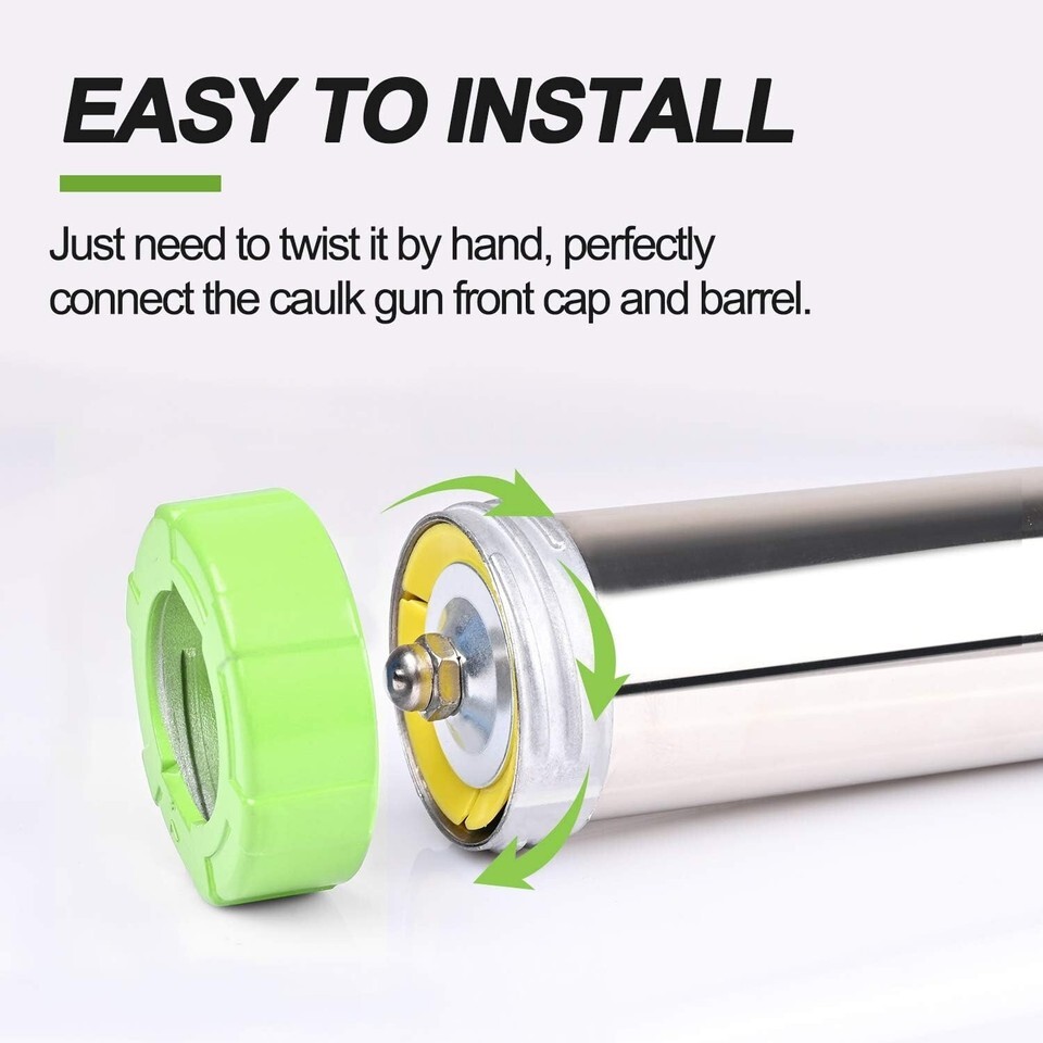 Easy to Install: Simply twist it by hand, creating a perfect connection between the caulk gun's front cap and barrel, allowing for smooth operation.
