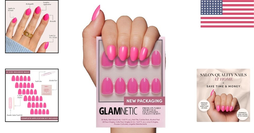 Vibrant Hot Pink Press-On Nails | Reusable Short Oval Kit