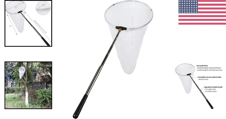 Telescopic Butterfly Net with 24" Depth and 12" Ring - Perfect for Collectors