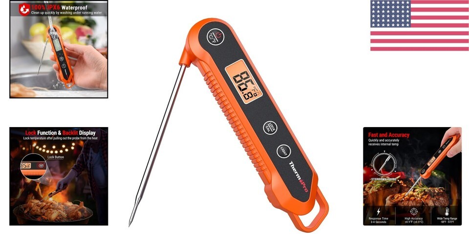 Fast and Accurate: Equipped with a 3.9-inch food-grade stainless steel probe and high precision sensor, this thermometer delivers internal temperature readings in just 3-4 seconds, accurate to 0.9F.