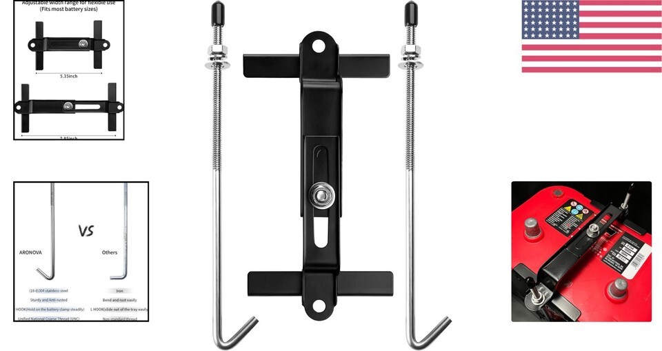 Stainless Steel J Bolts Battery Hold Down - Adjustable Crossbar for Reliable Fit