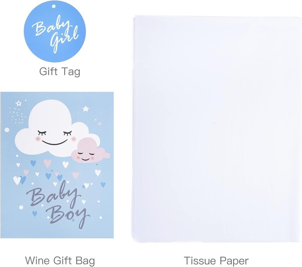 VALUE PACKAGE: Includes one large gift bag, three sheets of pristine white tissue paper, and a coordinating card with an envelope, perfect for celebrating a special baby shower.