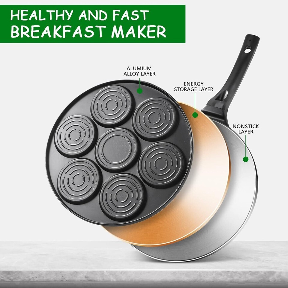Transform your family meals into delightful culinary experiences with our Stylish Black Nonstick Pancake Griddle. Designed with health and efficiency in mind, this griddle is perfect for busy mornings when you wish to serve mouthwatering pancakes, crepes, and more. The 7-hole design not only speeds up cooking time but also entertains your family with delicious variety on their plates.