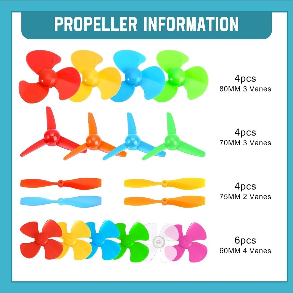 Features 18 vanes propeller (60mm, 70mm, 75mm, 80mm) and 18 switches