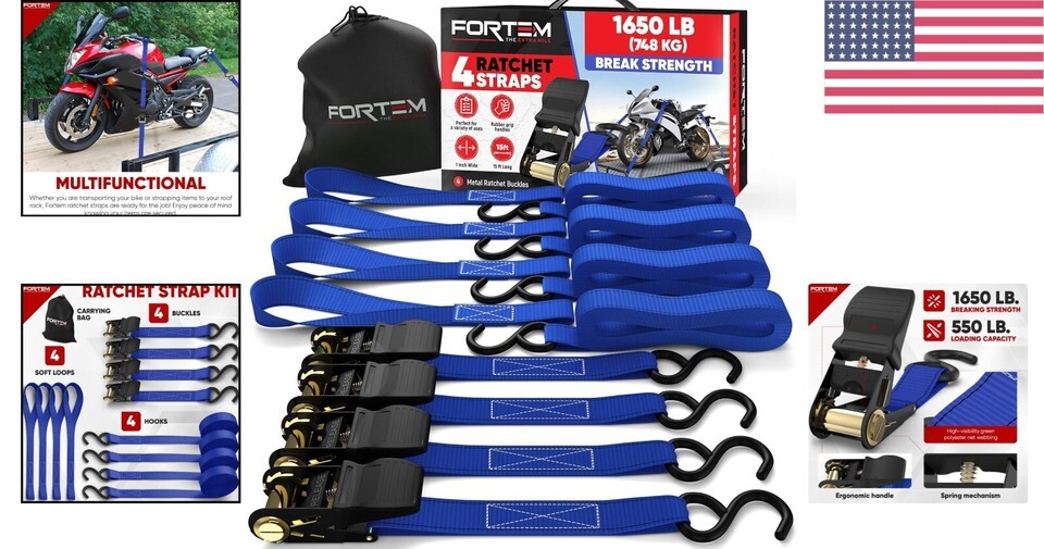 All-in-One Tie Down Kit: 4 Ratchet Straps & Soft Loops, Perfect for Motorcycles