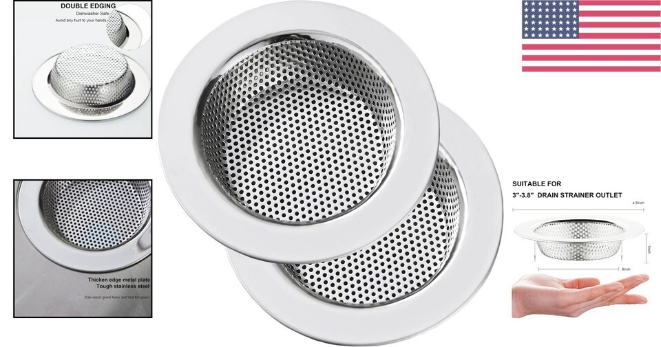 -Set of 2 Stainless Steel Kitchen Sink Strainers
