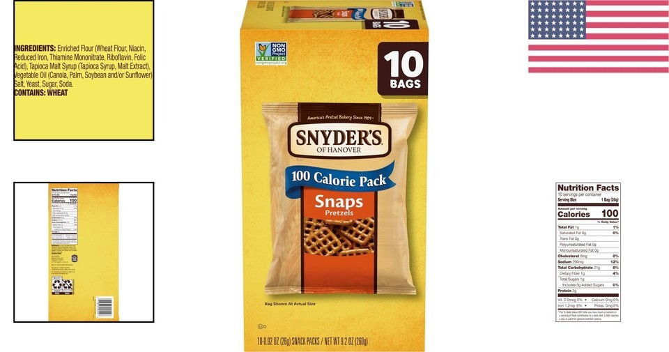 Indulge in the delightful crunch of Snyder's Pretzels with our Non-GMO 100 Calorie Snack Packs ? perfectly portioned for guilt-free enjoyment!