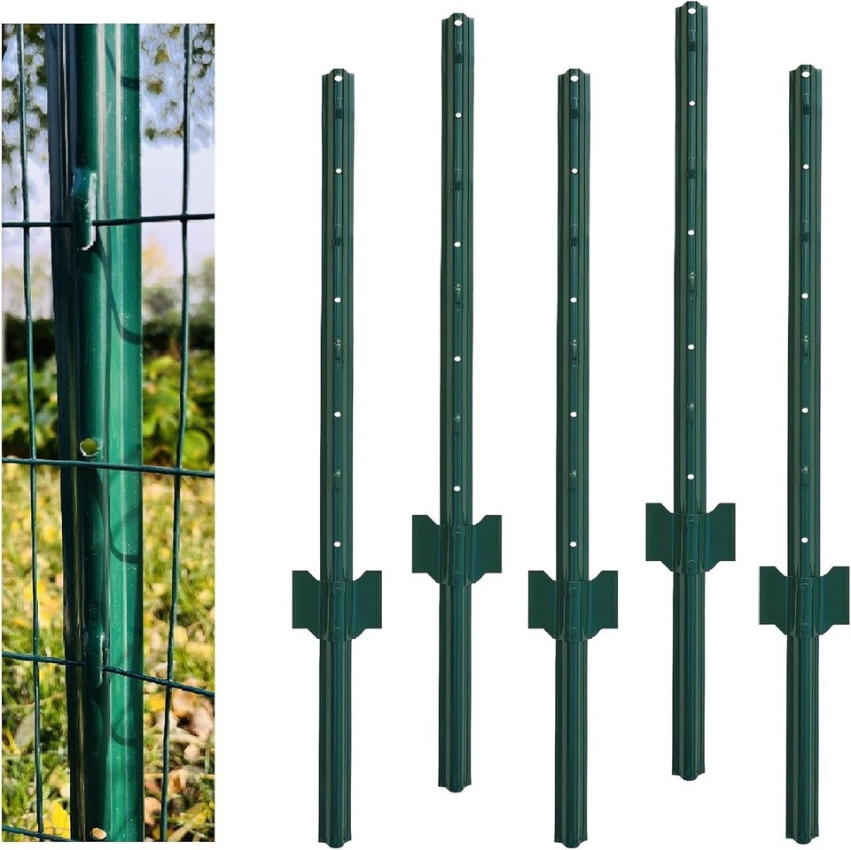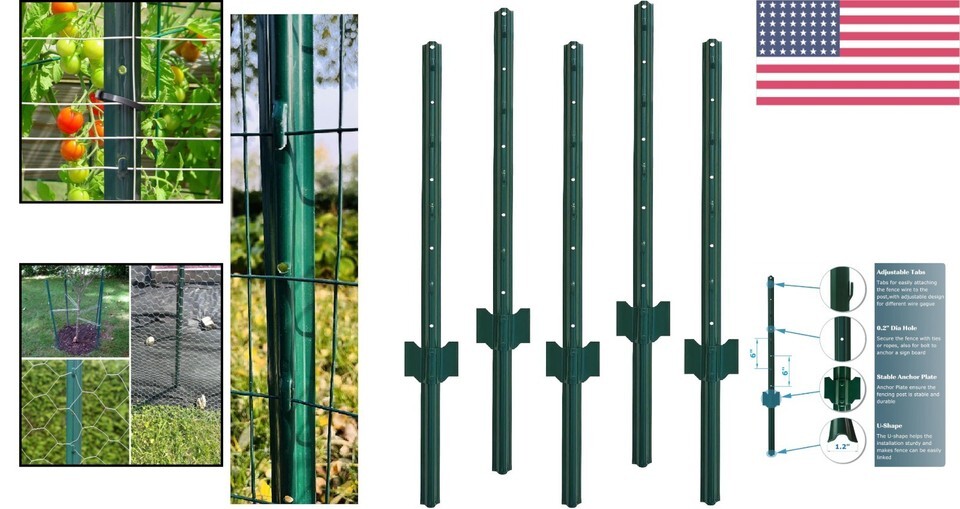 3' Powder Coated Green Metal Garden Stakes - 5 Count for Reliable Fencing