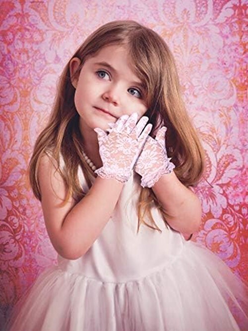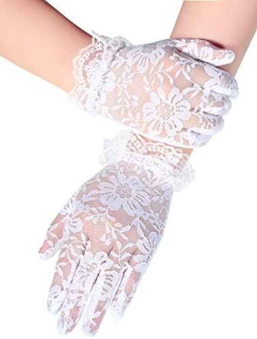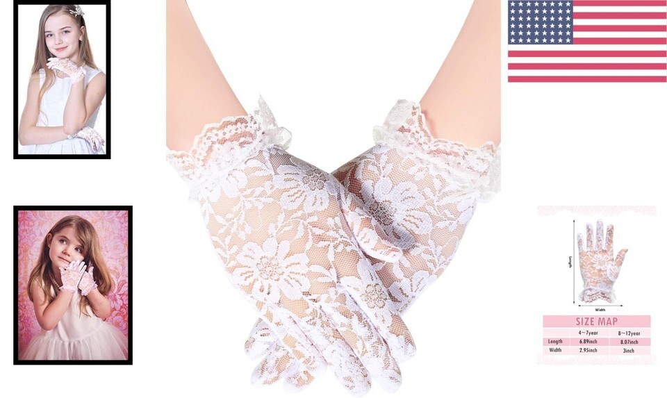 Soft & Stylish White Lace Gloves for Girls - Small Size for Pageants & Cosplay