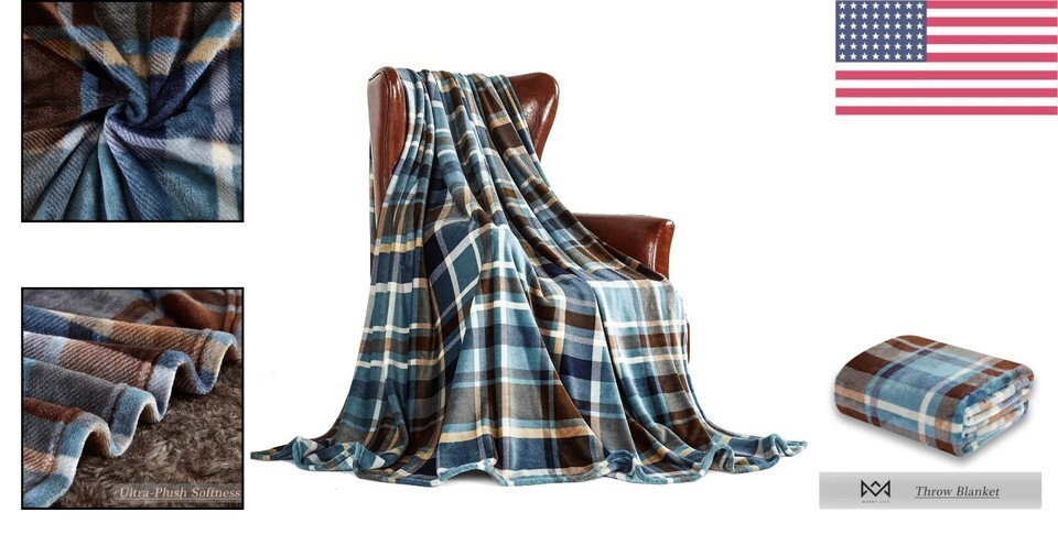 Colorful Ultra-Plush Travel Blanket - Decorative King Size Plaid Throw 90"x102"