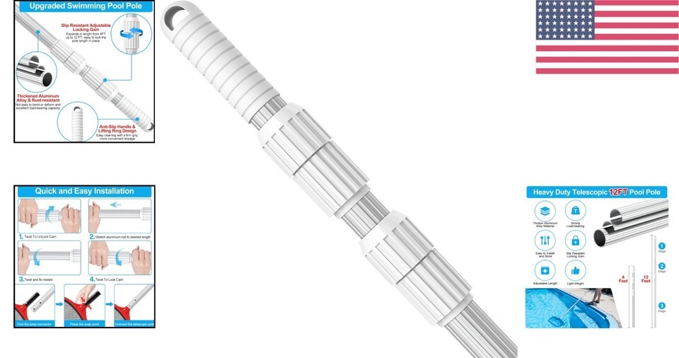 Searching for a reliable tool that simplifies pool maintenance? The Professional 12FT Telescopic Pool Cleaning Pole is designed for efficiency and durability, ensuring you have the right equipment to keep your pool sparkling clean. Its user-friendly design features slip-resistant locking for easy adjustments, while its robust aluminum construction withstands the of time.