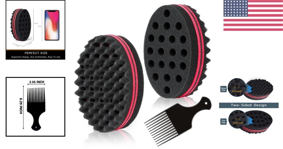 2-Piece Set: Includes two magic twist sponges and a free pick comb for all your curling needs.