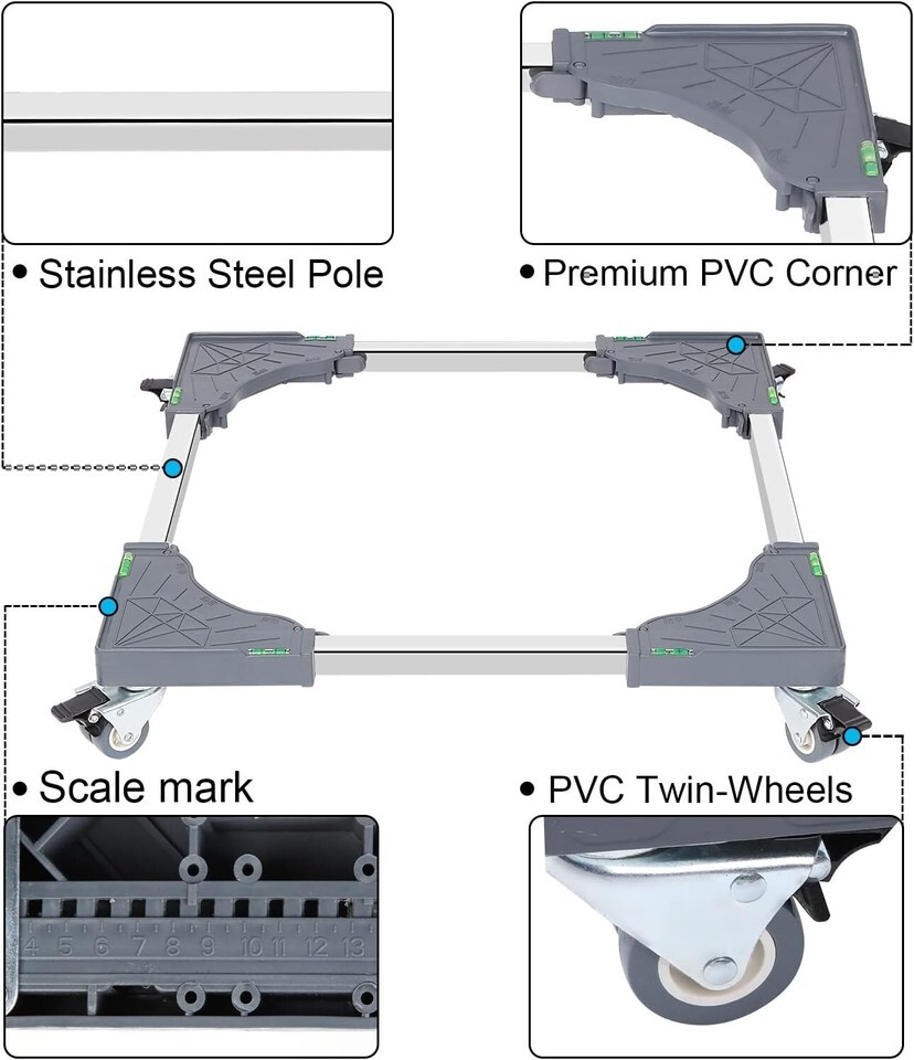 Product Parameters: Height: 3-7/8 inches. Includes 4 sturdy PVC corner pieces, stainless-steel poles, locking swivel wheels, and non-slip mats.