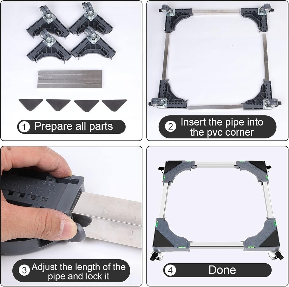 Heavy-Duty Adjustable Dolly with 4 Locking Wheels for Easy Appliance Moving