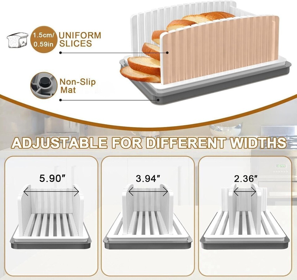 Elevate your bread-baking experience?order the Adjustable Bread Slicer with Crumb Tray today!