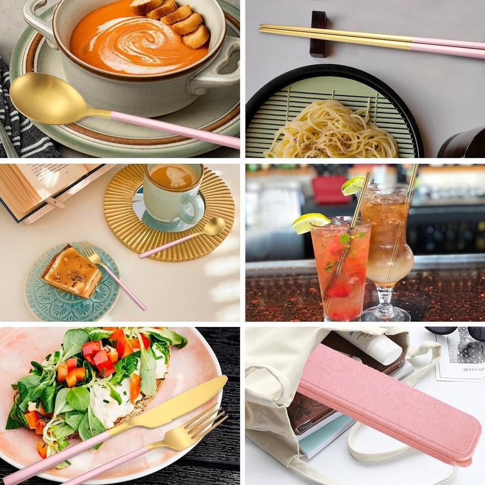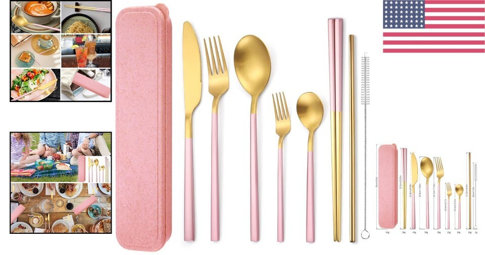 Set Includes: Fork,Knife,Spoon,Set,Chopsticks,Straws,Cleaning Brush